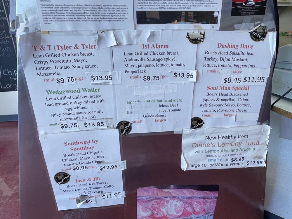 Sliced Boar's Head chicken breast, deluxe ham, mayo, dijon mustard, lettuce, tomato, pepperoncinis and redonions.