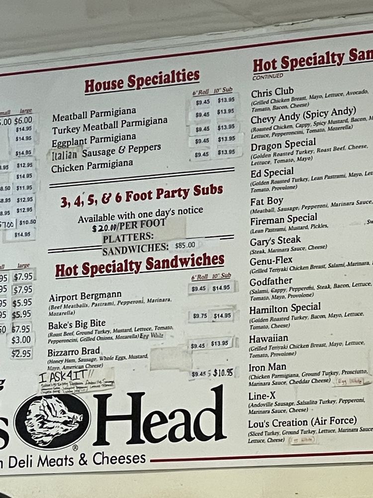 2 scrambled/fried eggsBoars head deluxe ham or turkeyAmerican or cheddar or provolone On freshly baked no preservative round RinaldiS roll Or 10 inch sub